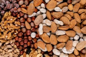 with pecan, pistachios, almond, peanut,